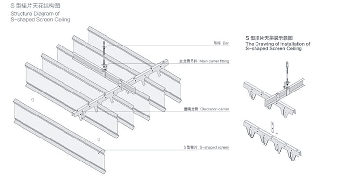 斜角S型掛片:通透、防風(fēng)、極具方向性,通透開闊,立體感強(qiáng)烈,可調(diào)節(jié)裝飾空間視覺高度,搭配不同燈光效果,展現(xiàn)明快、飄逸的裝飾風(fēng)格,防風(fēng)碼安裝結(jié)構(gòu)使產(chǎn)品有效防風(fēng)。