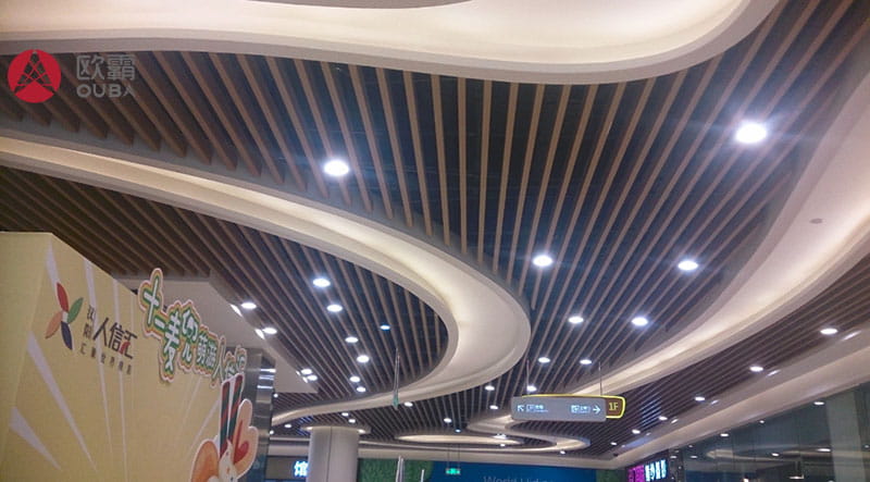 安裝不同的鋁方通是都可以選擇不同的高度和間距,可一高一低,一疏一密,加上合理的顏色搭配,令設(shè)計(jì)千變?nèi)f化,能夠設(shè)計(jì)出不同的裝飾效果。同時(shí),由于鋁方通是通透式的,可以把燈具,空調(diào)系統(tǒng),消防設(shè)備置于天花板內(nèi),以到達(dá)整體一致的的完美視覺效果。