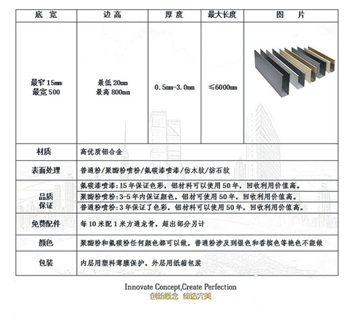 幕墻外墻、天花吊頂、造型鋁合金方通專(zhuān)業(yè)生產(chǎn)廠家首選廣州歐霸建材鋁業(yè),廣州歐霸天花是專(zhuān)業(yè)從事“鋁方通等建筑裝飾材料”研發(fā),生產(chǎn),銷(xiāo)售,安裝及技術(shù)服務(wù)于一體的現(xiàn)代型企業(yè)。鋁方通是最近幾年出現(xiàn)的新型裝飾材料,它具有輕質(zhì)、耐水、不吸塵、抗腐蝕、易擦洗、易安裝、立體感強(qiáng)、色彩柔和和美觀大方等特點(diǎn),深受用戶(hù)的歡迎。鋁方通是采用優(yōu)質(zhì)鋁合金板材為基材,再經(jīng)過(guò)數(shù)控折彎等技術(shù)成型,表面噴涂裝飾性涂料的一種新型幕墻材料。鋁方通基材采用1100H24、1060H24、3003H24、5005H24等幕墻專(zhuān)用單層鋁合金板。