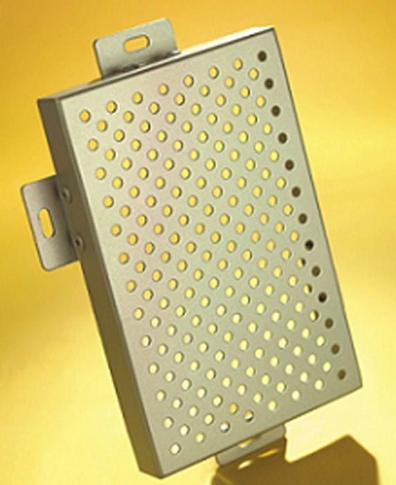 3、工藝性好。采用先加工后噴漆工藝,鋁板可加工成平面、弧型和球面等各種復(fù)雜幾何形狀。