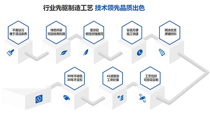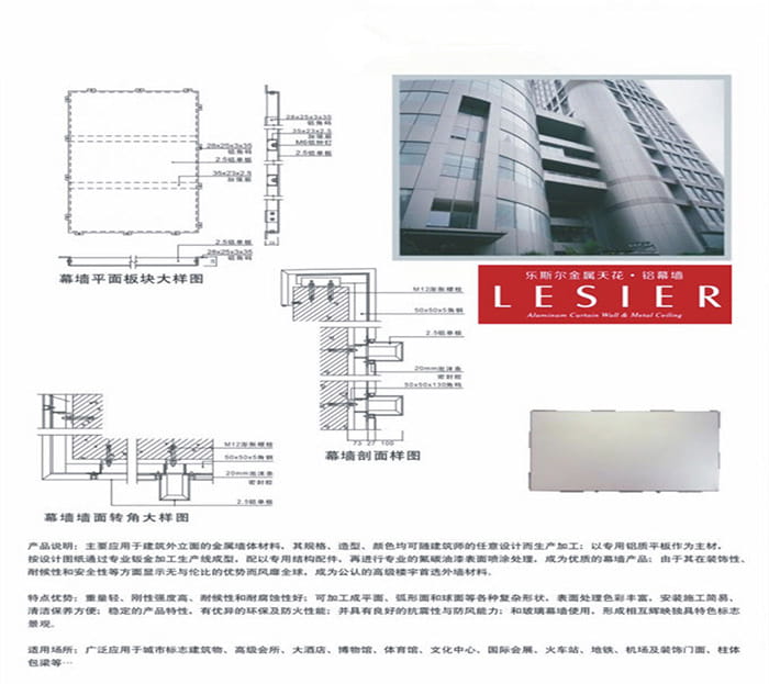 鋁單板輕量化,剛性好、強(qiáng)度高、不燃燒性、防火性佳、加工工藝性好、色彩可選性廣、裝飾效果極佳、易于回收、利于環(huán)保。