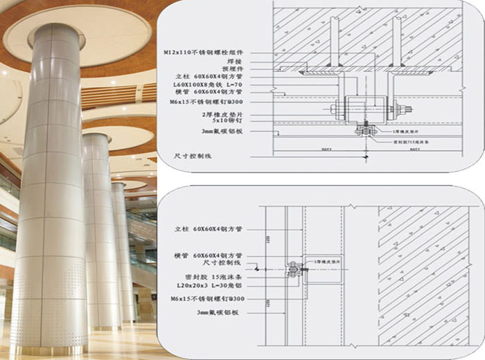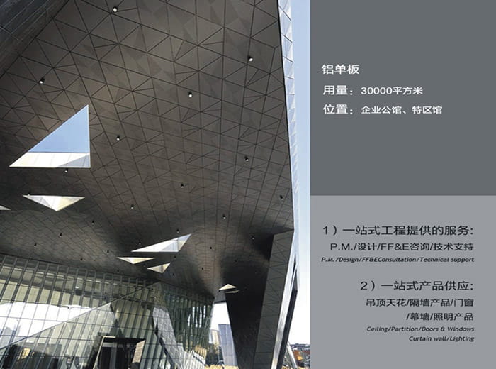 各種建筑內(nèi)外墻、大堂門面、柱飾、高架走廊、人行天橋、電梯包邊、陽臺包邊、廣吿指示牌、室內(nèi)異形吊頂?shù)鹊难b飾。